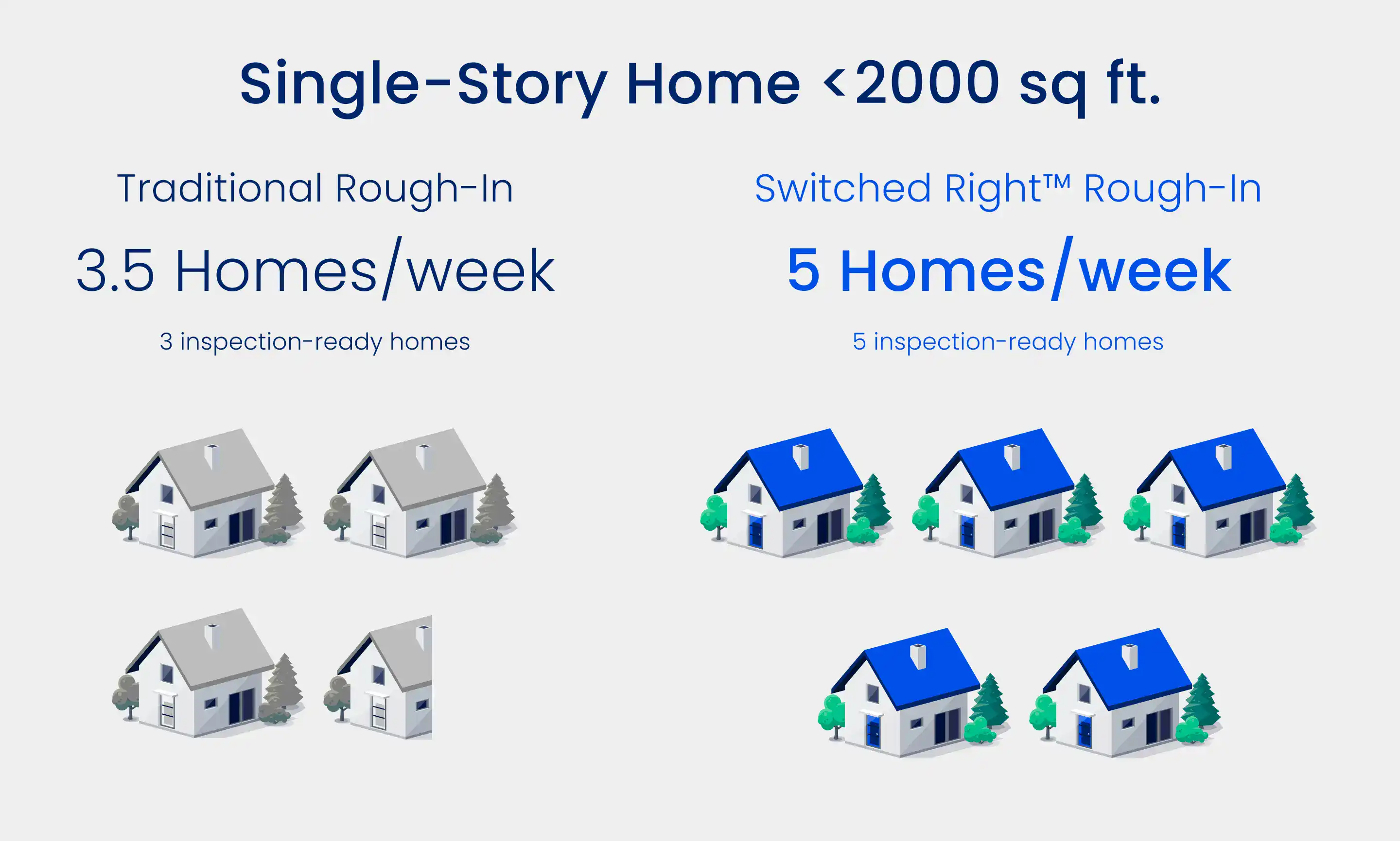 Explore key data comparing traditionally wired homes to Switched Right® homes, based on averages from single-story installations across North America.