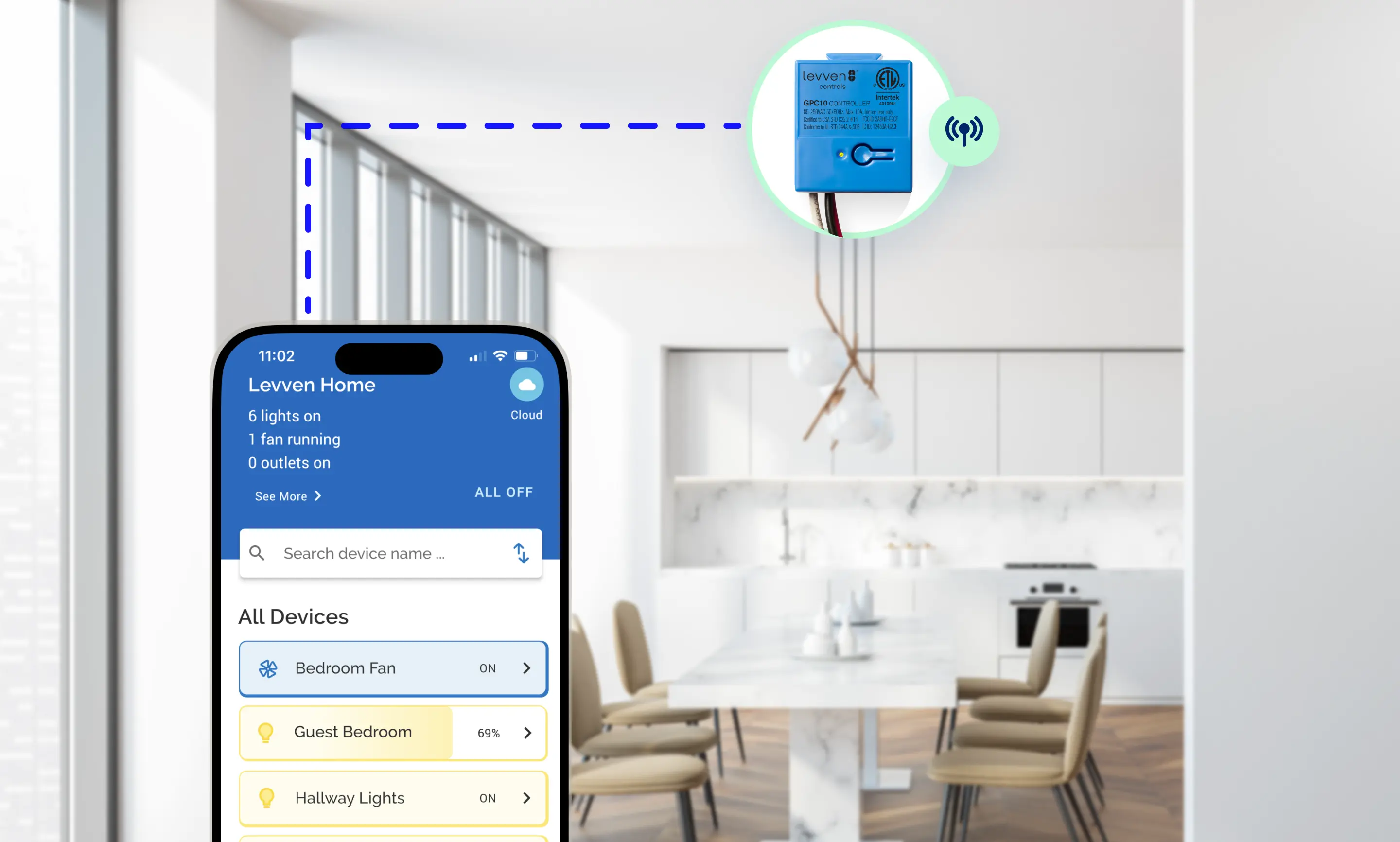 The Levven app lets you control, customize, and automate switches and devices easily from your mobile device.